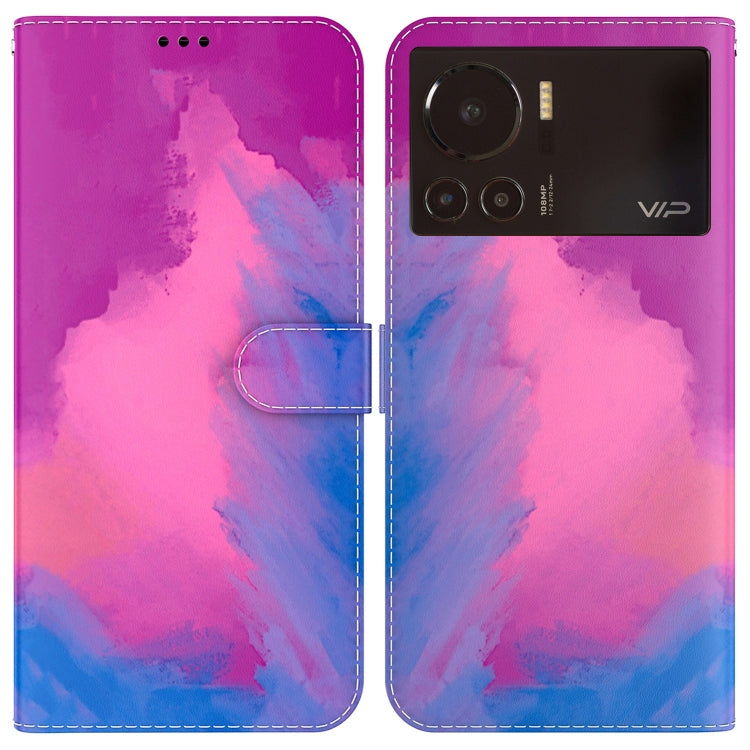 Funda de Cuero para Infinix Note 12 Vip con Tapa Horizontal y Patrón de Acuarela (Púrpura Rojo)