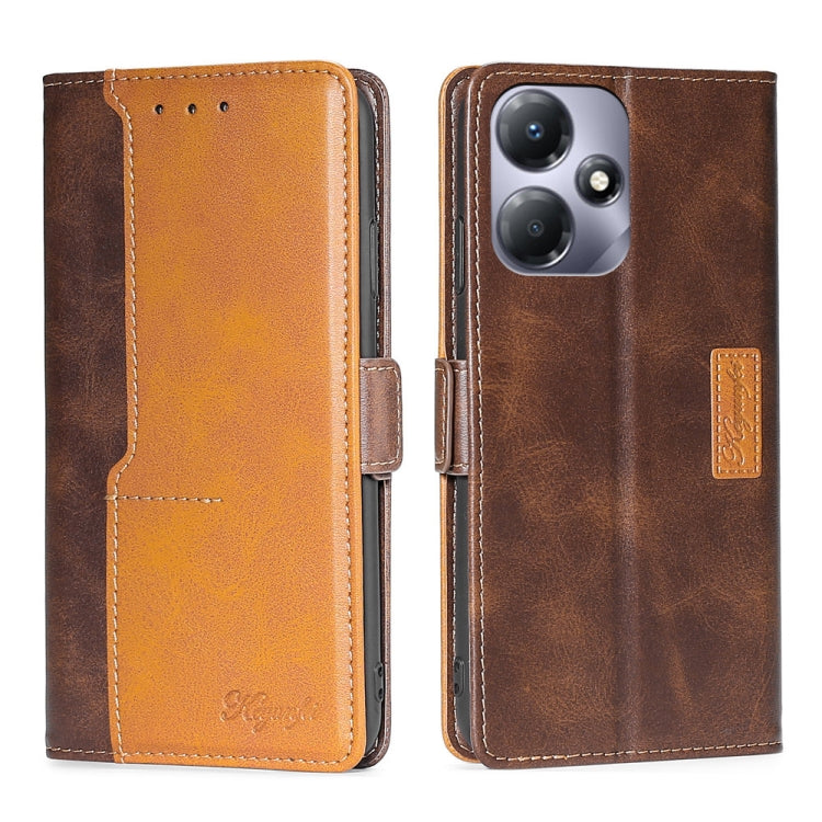 Caja de Teléfono de Cuero para Infinix Hot 30 Play 4G con Hebilla Lateral (Marrón Oscuro + Dorado)