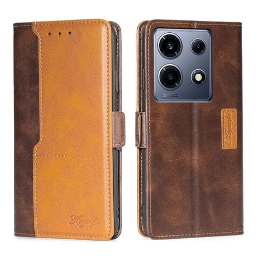 Caja de Teléfono de Cuero para Infinix Note 30 5G con Hebilla Lateral (Marrón Oscuro + Dorado)