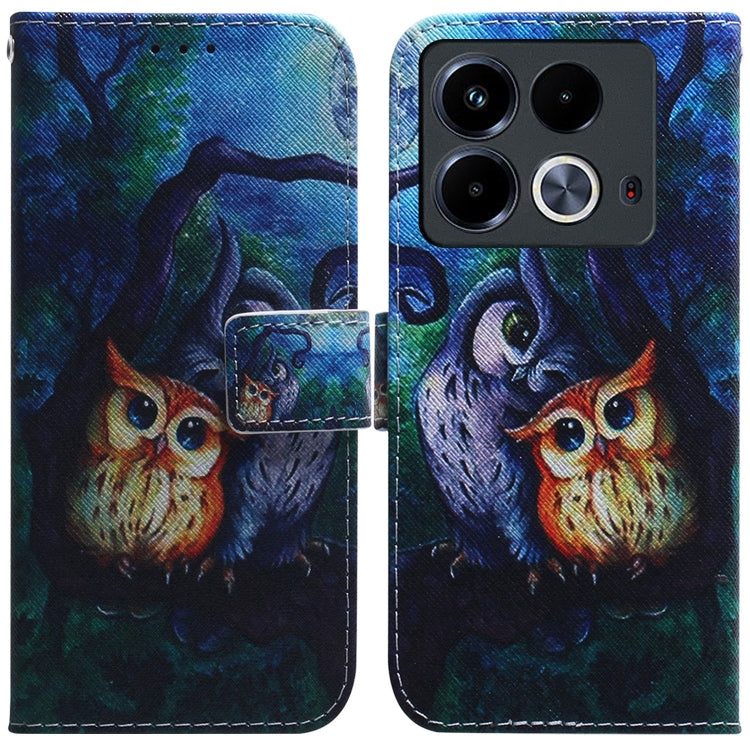 Funda de Cuero para Infinix Note 40 4G con Tapa y Dibujo Coloreado (Búho de Pintura al Óleo)