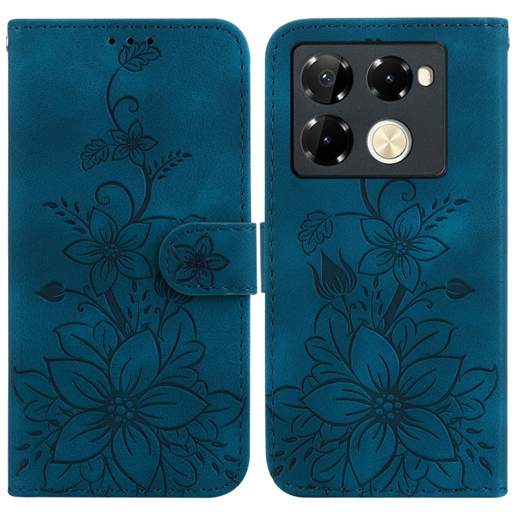 Funda de Cuero con Relieve de Lirio para Teléfono Infinix Note 40 Pro+ 5G (Azul Oscuro)