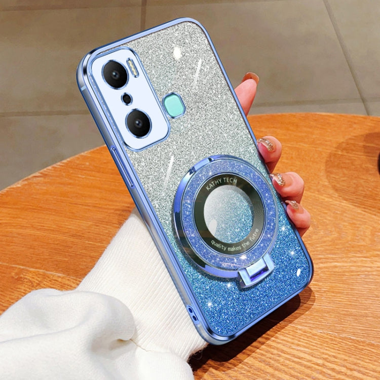 Funda de TPU con Soporte Redondo y Purpurina Degradada para Infinix Hot 12 Play (Azul Sierra)