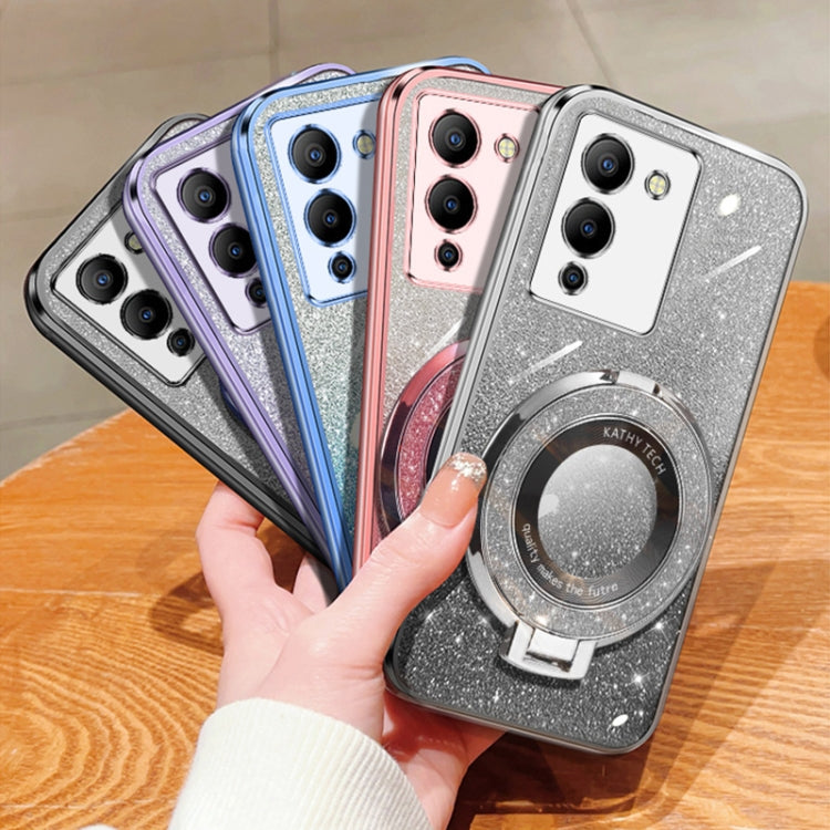 Funda de TPU con Soporte Redondo y Purpurina Degradada Chapada Vip para Infinix Note 30 (Plateada)