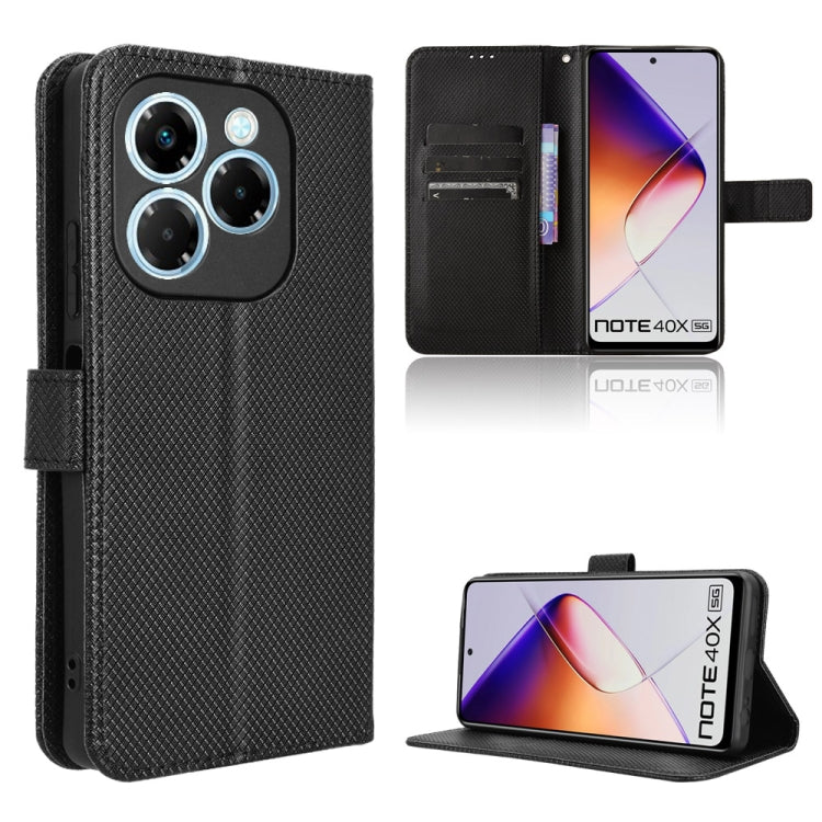 Funda de Cuero Textura de Diamante para Infinix Note 40X 5G (Negro)