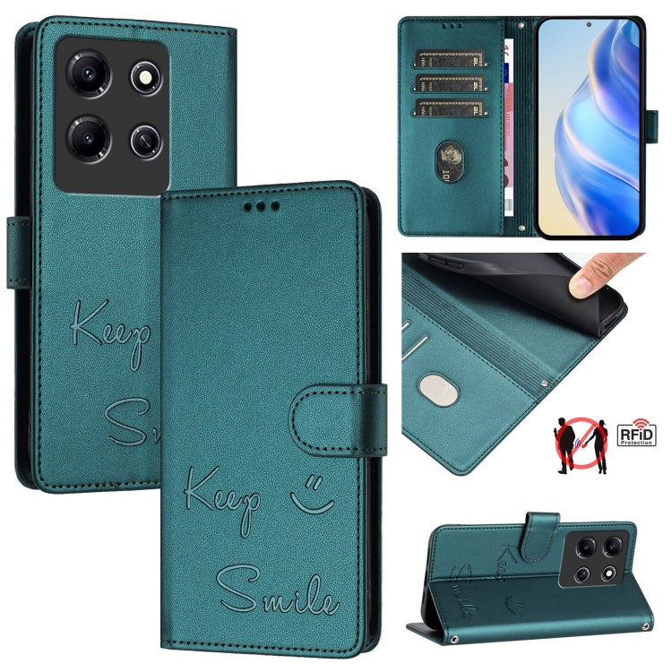 Funda de Cuero Rfid con Relieve Sonriente para Teléfono Infinix Note 30I (Verde Pavo Real)