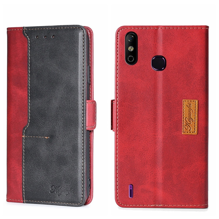 Funda de Cuero para Infinix Smart 4 X653 con Hebilla Lateral y Contraste de Color (Rojo + Negro)