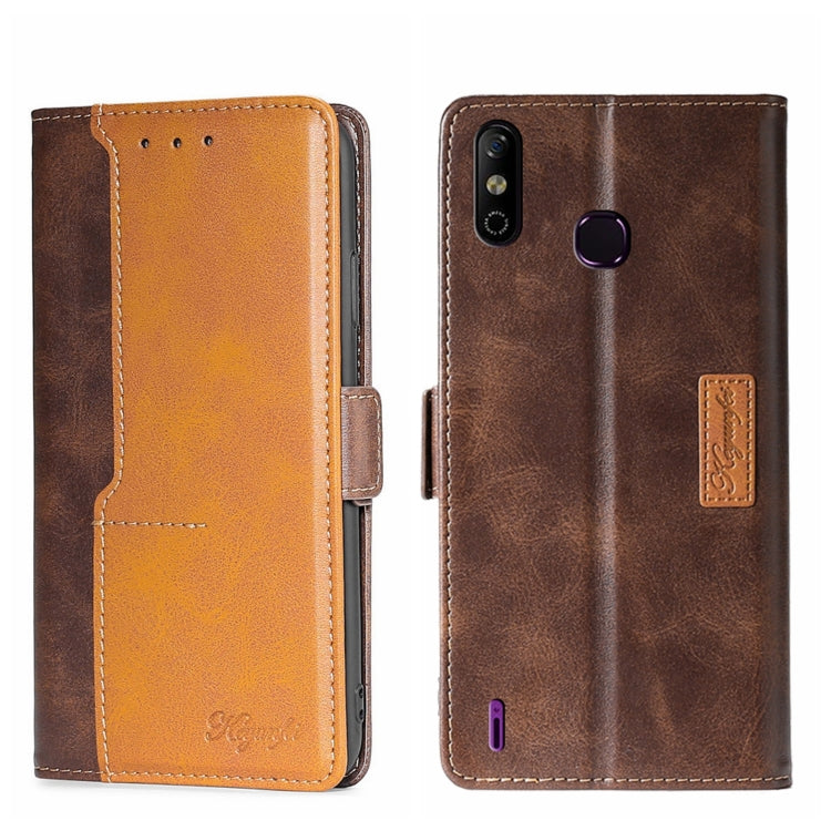 Funda de Cuero para Infinix Hot 9 Note 7 Lite X655C con Hebilla Lateral (Marrón Claro y Verde)