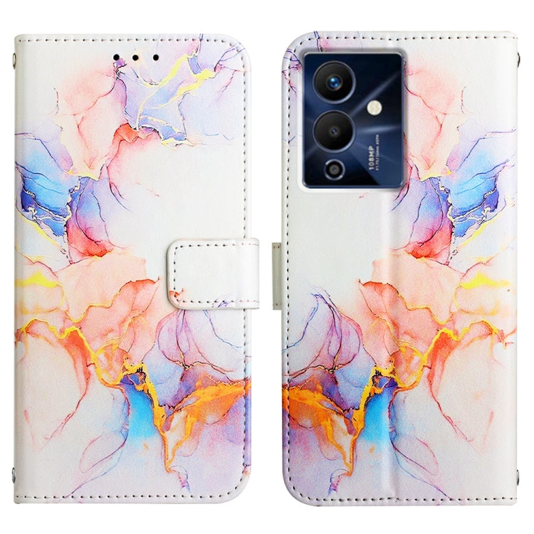 Funda de Teléfono Infinix Smart 6 Plus X6823 Pt003 con Tapa de Cuero y Patrón Mármol (Blanco Púrpura)