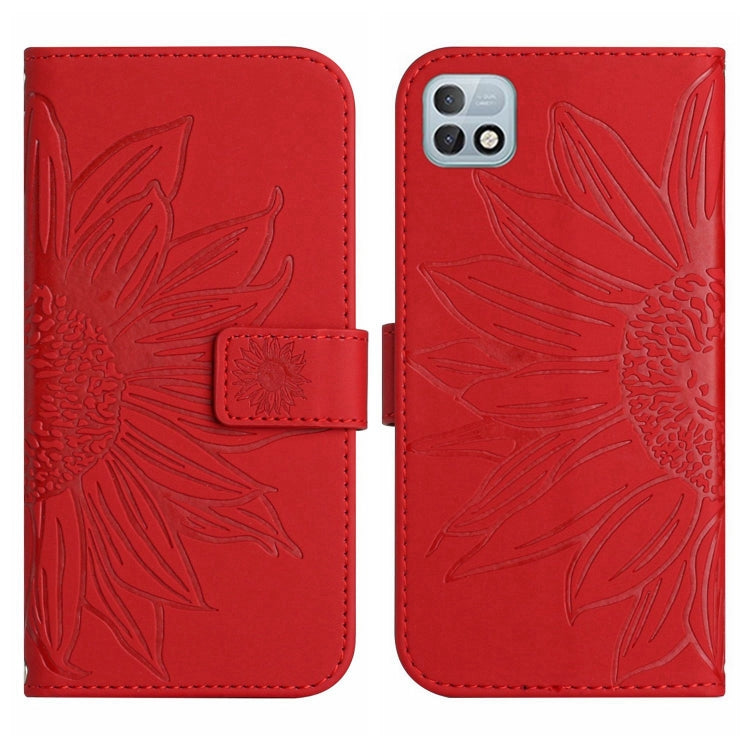 Funda Flip de Cuero para Infinix Hot 11 con Cordón y Diseño Sun Flower (Rojo)