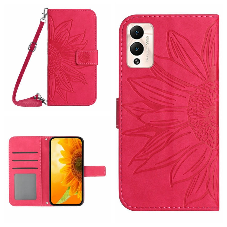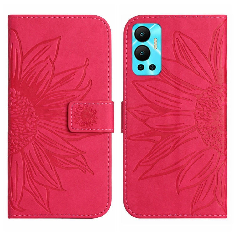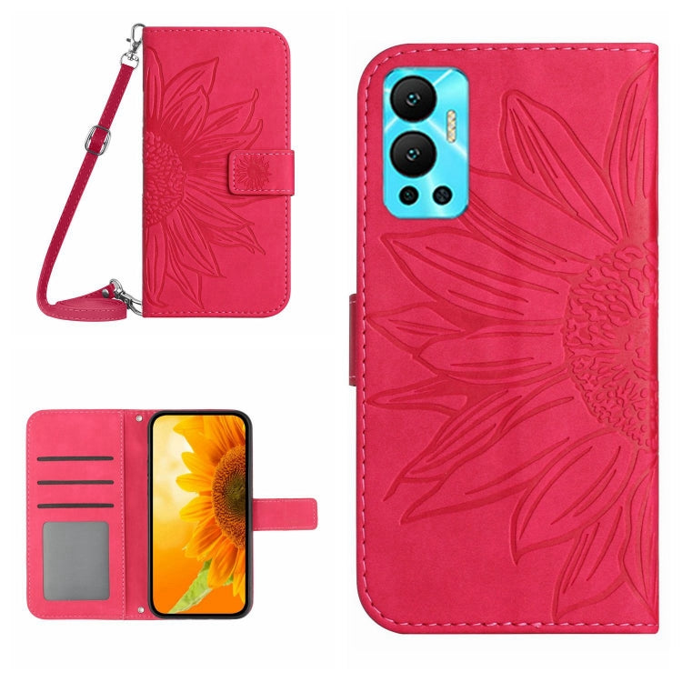 Funda de Cuero Flip para Infinix Hot 12 con Cordón y Skin Feel Sun Flower Pattern (Rose Red)