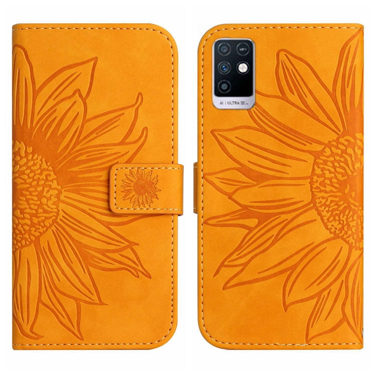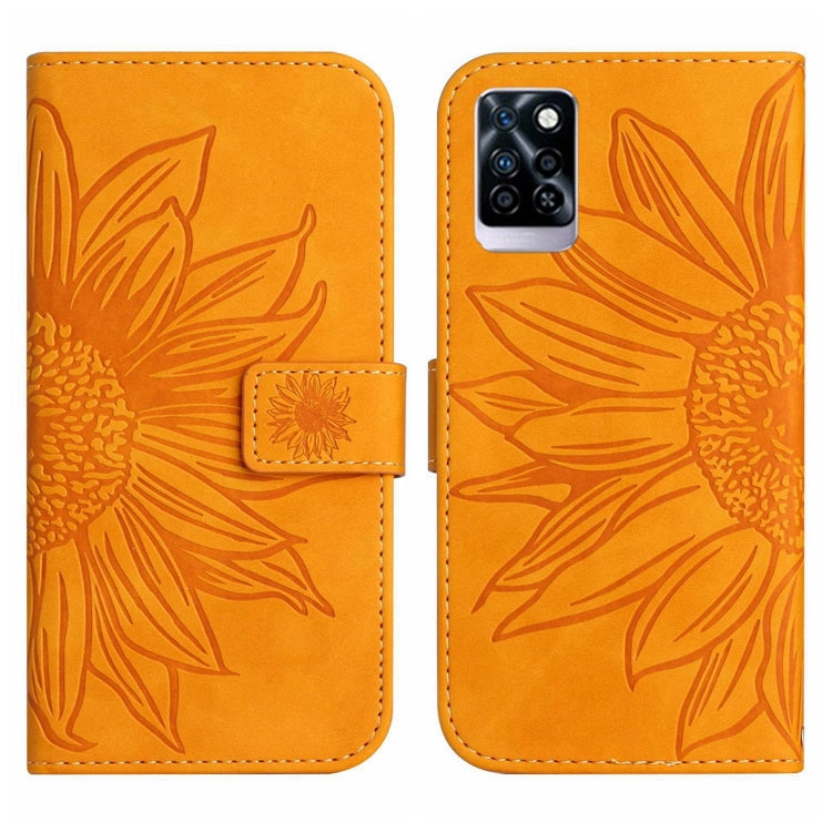 Funda Flip de Cuero para Infinix Hot 10 Skin Feel con Cordón y Patrón Sun Flower (Amarillo)