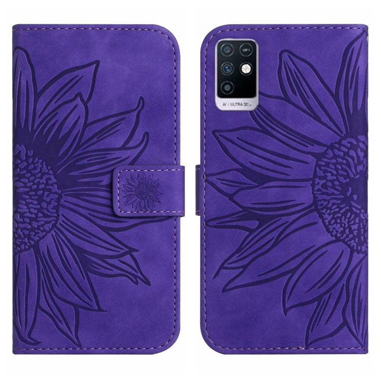 Funda de Cuero Flip para Infinix Hot 10S / 10S Nfc con Cordón y Diseño Sun Flower (Púrpura Oscuro)