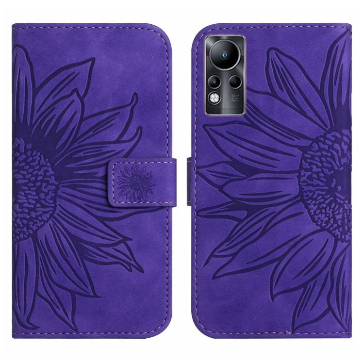 Funda de Cuero Flip para Infinix Hot 12 Play con Cordón y Diseño Sun Flower (Púrpura Oscuro)