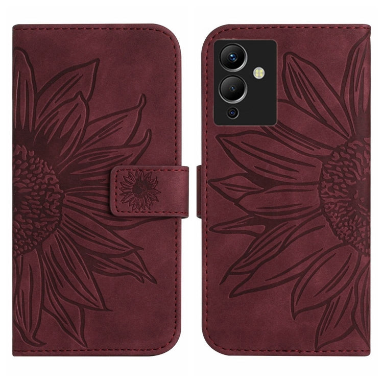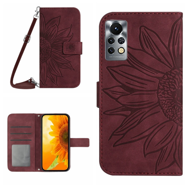 Funda de Cuero Flip para Infinix Hot 11S NFC con Cordón y Diseño Sun Flower (Rojo Vino)