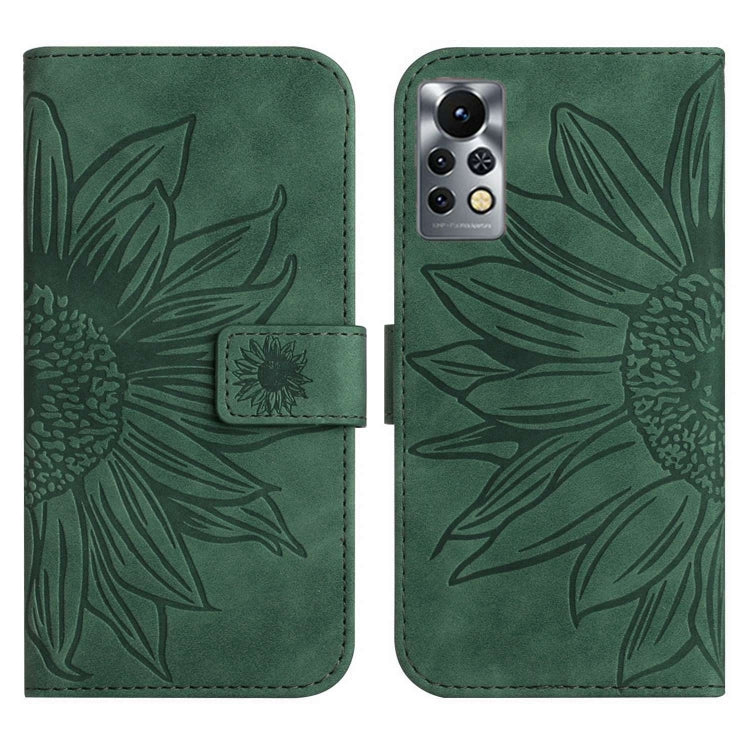 Funda Flip de Cuero para Infinix Hot 12 Play Skin Feel con Cordón y Patrón Girasol (Verde)