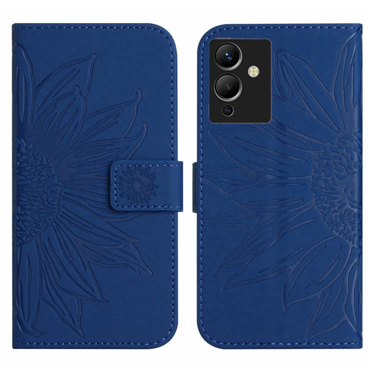 Funda de Cuero con Tapa y Cordón para Infinix Hot 11S NFC Skin Feel Sun Flower (Azul Tinta)