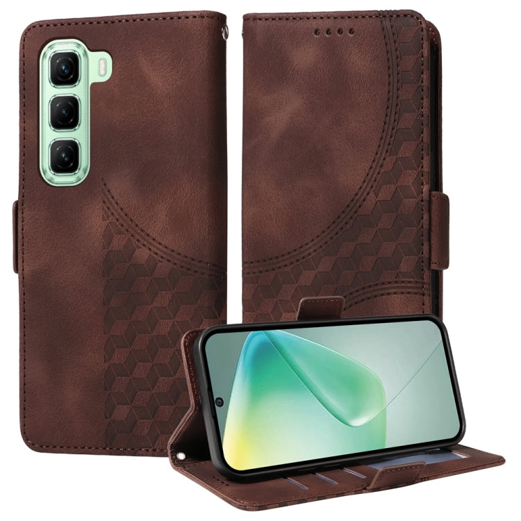 Funda de Cuero con Rombos en Relieve y Estrellas para Infinix Hot 50I Smart 9 (Marrón)