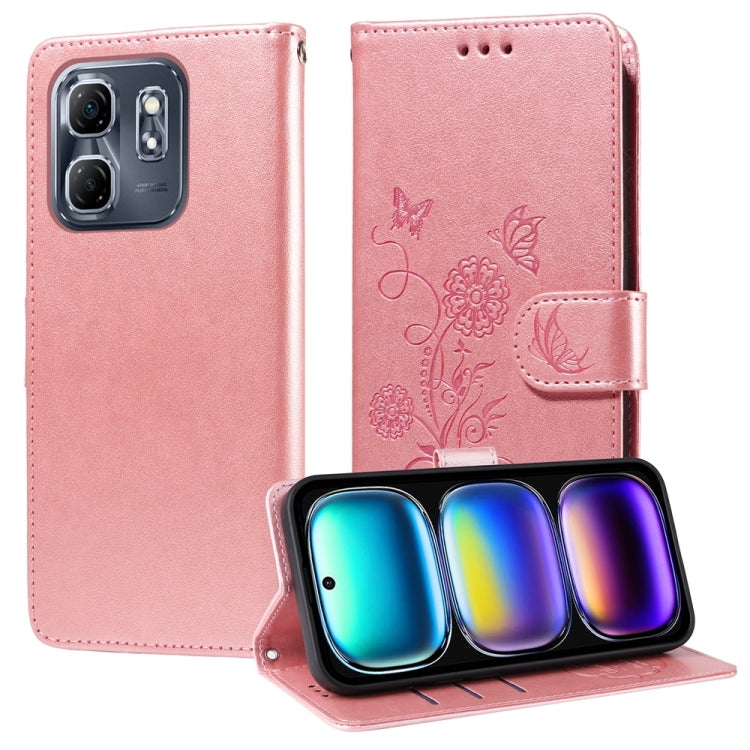 Funda de Cuero para Infinix Hot 50I Smart 9 con Diseño de Mariposas y Flores en Relieve (Oro Rosa)