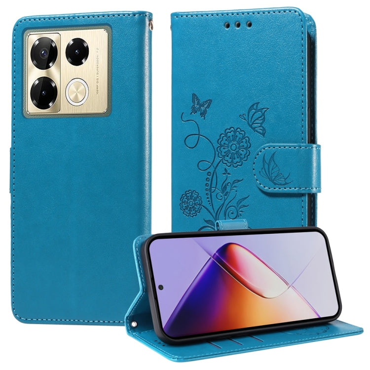 Funda de Cuero con Diseño de Mariposas y Flores en Relieve para Infinix Note 40 Pro 4G/5G/Pro+ (Azul)