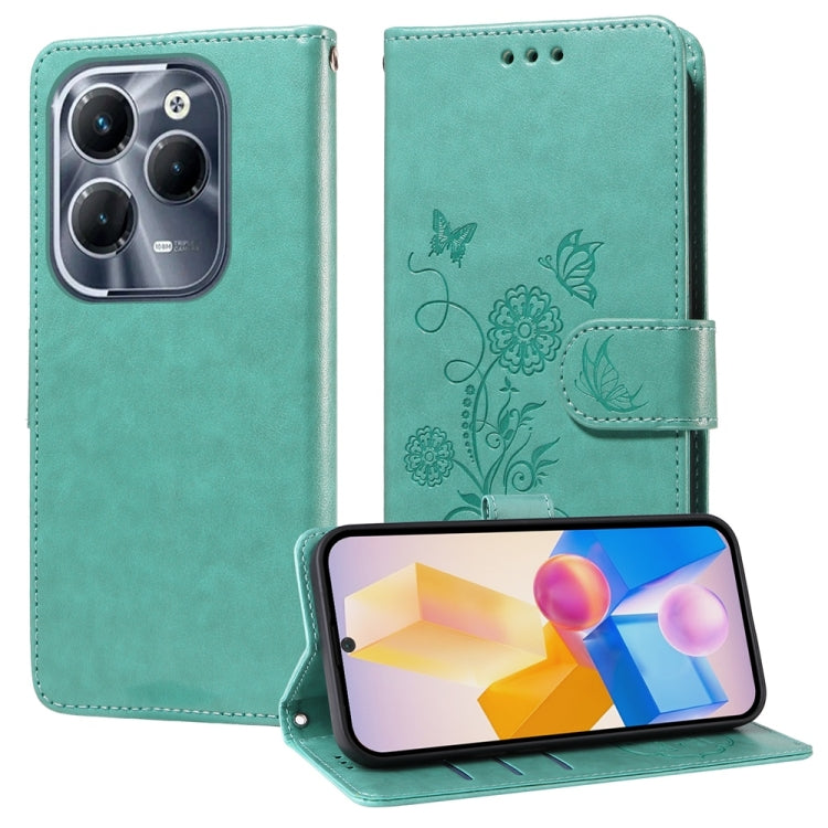 Funda de Cuero para Infinix Hot 50I Smart 9 con Diseño de Mariposas y Flores en Relieve (Verde)