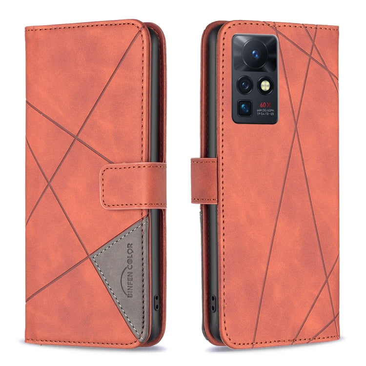 Para infinix cero x / x pro bf05 hebilla magnética rhombus textura de textura de cuero caja (marrón)