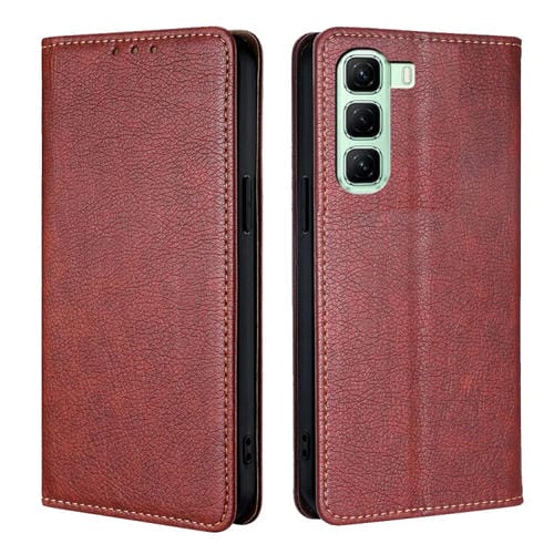 Funda de Cuero Magnética para Infinix Hot 50 5G con Acabado Brillante (Marrón)