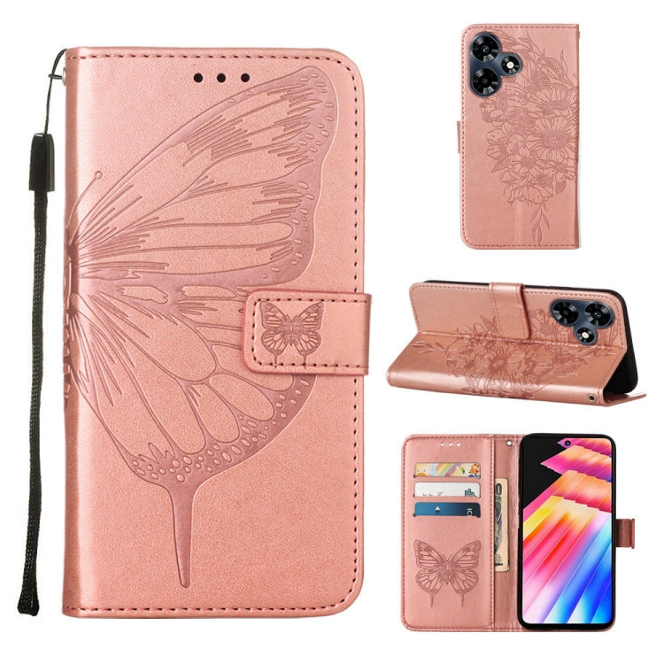 Estuche para Teléfono Infinix Hot 30 4G X6831 de Cuero con Mariposa en Relieve (Oro Rosa)