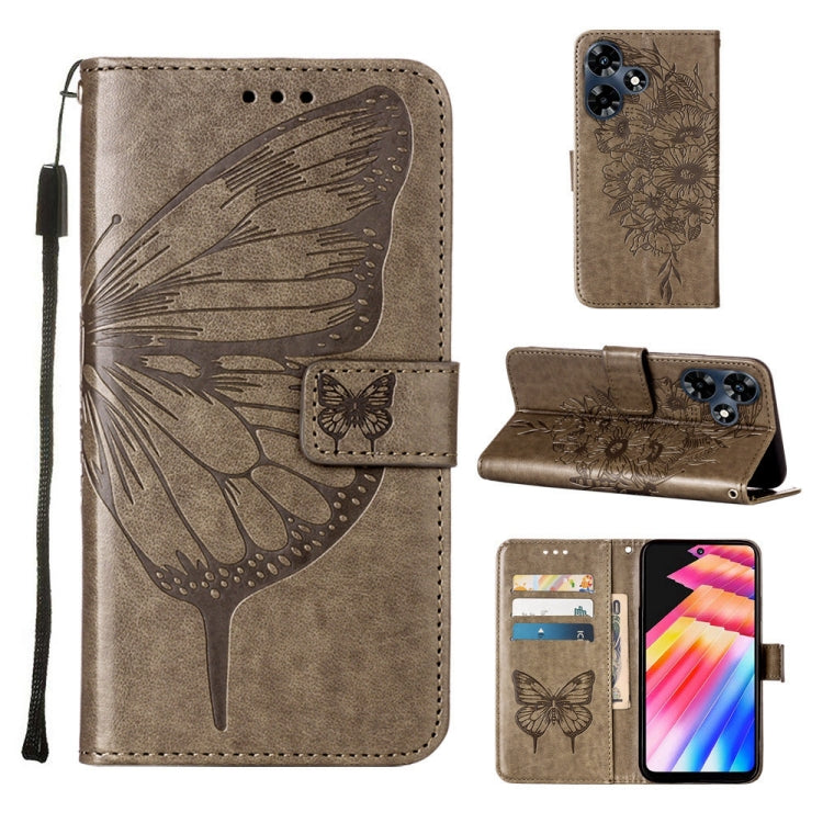 Estuche para Teléfono Infinix Hot 30 4G X6831 Cuero con Mariposa En Relieve (Gris)