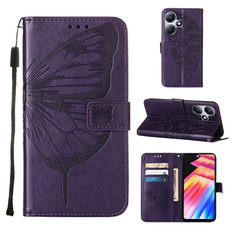 Estuche para Teléfono Infinix Hot 30 Play X6835 cuero Mariposa en Relieve (Púrpura Oscuro)