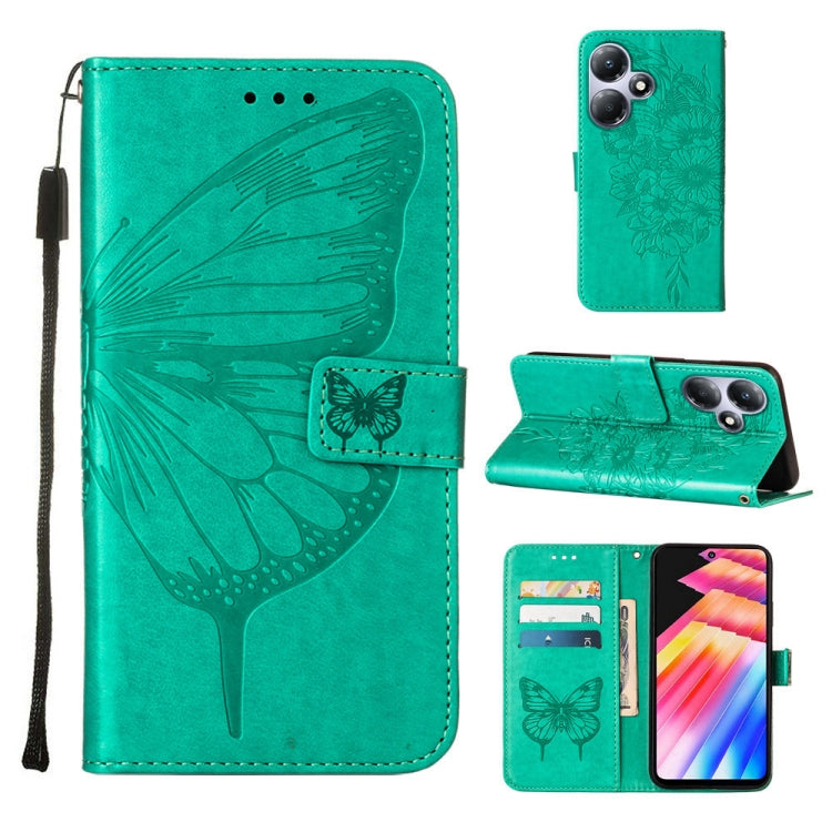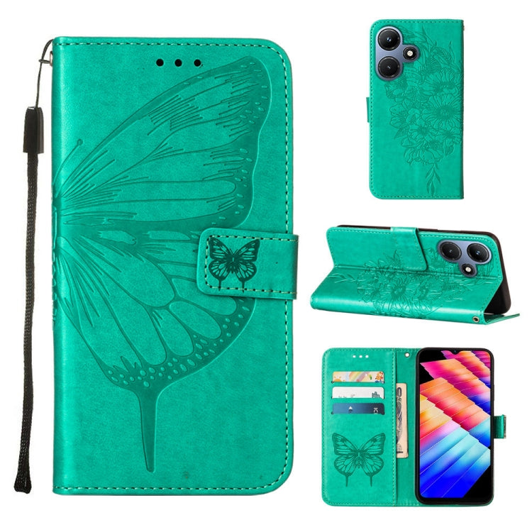 Estuche para teléfono Infinix Hot 30 Play X6835 cuero con mariposa en relieve (Verde)