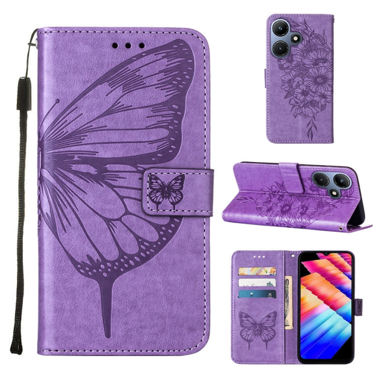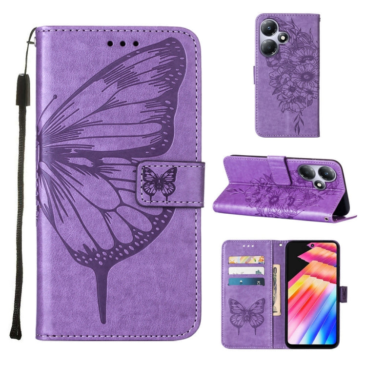 Estuche para Teléfono Infinix Hot 30 Play X6835 Cuero Mariposa En Relieve (Púrpura Claro)