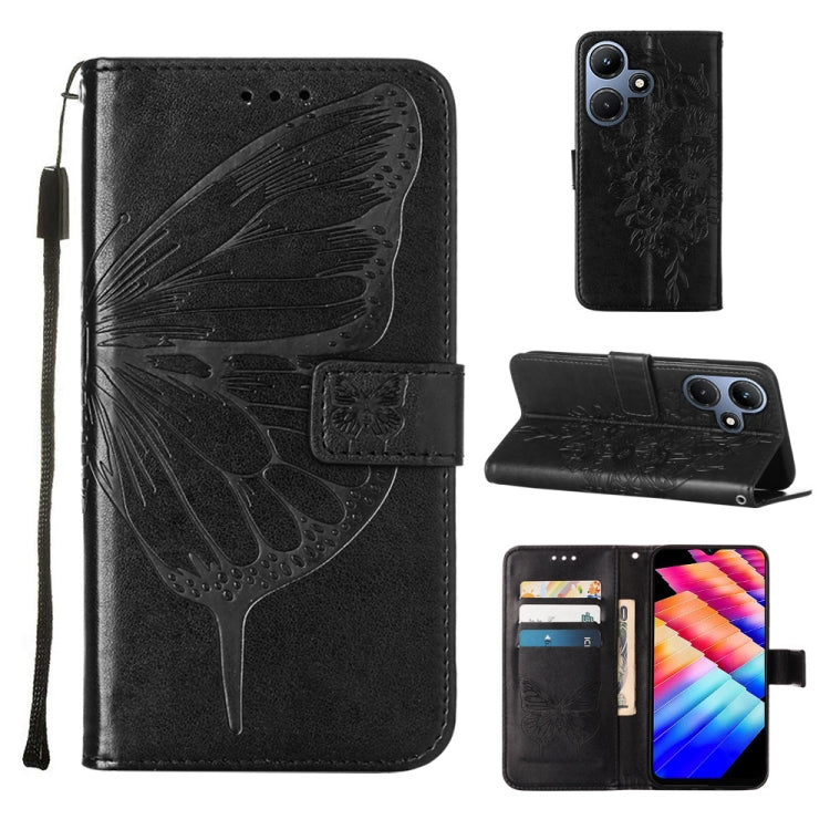 Estuche para Teléfono Infinix Hot 30I X669 Cuero con Mariposa en Relieve (Negro)