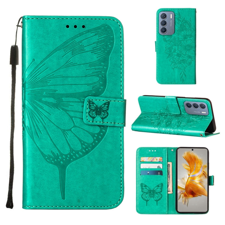Estuche para Teléfono Infinix Zero 20 / X6821 Cuero con Mariposa en Relieve (Verde)