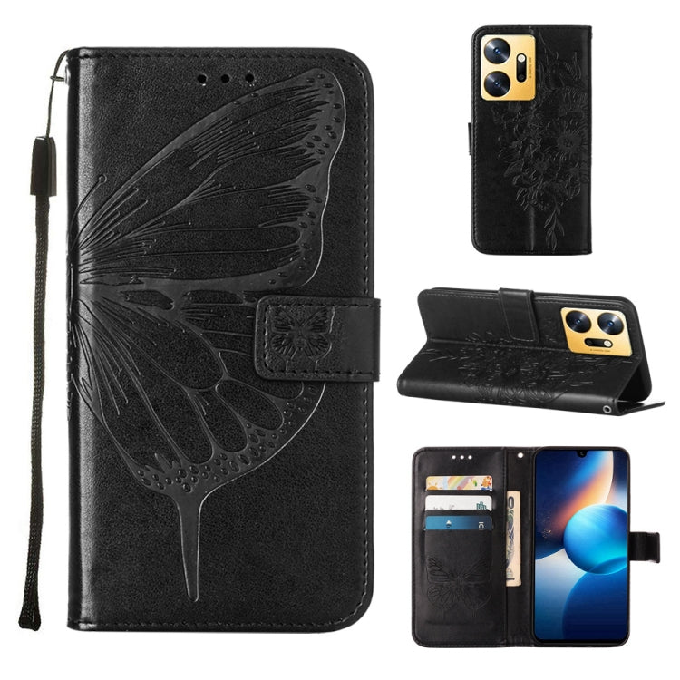 Estuche para Forinfinix Zero 5G 2023 / T781 de Cuero con Mariposa en Relieve (Negro)