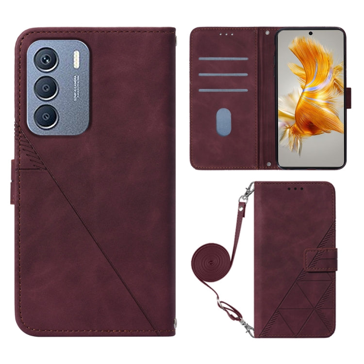 Funda de Cuero Crossbody 3D con Tapa para Infinix Zero 5G 2023 / T781 (Rojo Vino)