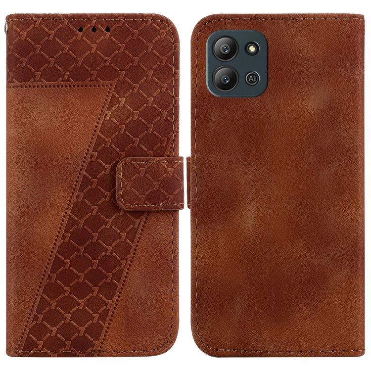 Estuche para Infinix Smart 6 de Cuero en Relieve en Forma de 7 (Marrón)