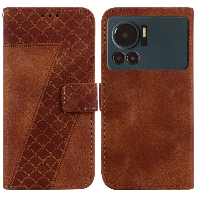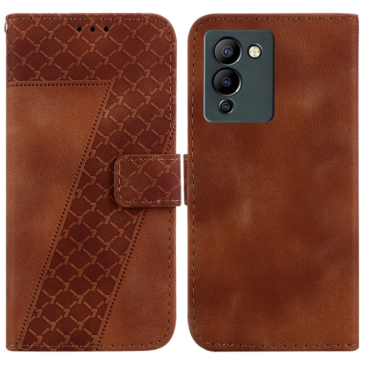 Funda de Cuero En Relieve en Forma de 7 para Infinix Hot 11 2022 (Marrón)