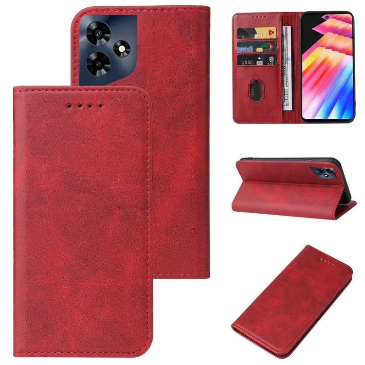 Caja de Teléfono de Cuero para Infinix Hot 30 con Cierre Magnético (Rojo)