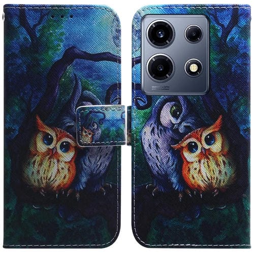 Funda de Cuero para Infinix Note 30 Vip con Tapa y Dibujo Coloreado (Búho de Pintura al Óleo)