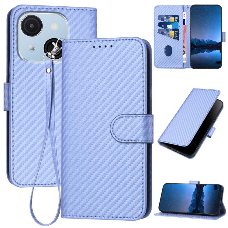 Funda de Cuero con Hebilla de Fibra de Carbono para Teléfono Itel A50C Yx0070 con Cordón (Morado Claro)