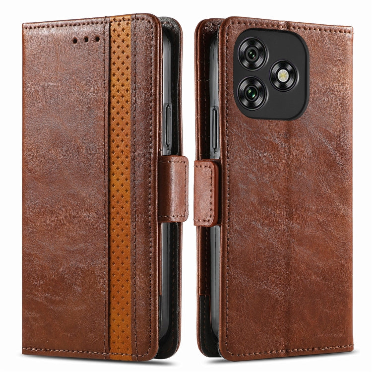 Funda de Cuero Magnética para Oukitel C53 con Diseño de Cuadrícula Cúbica (Marrón)