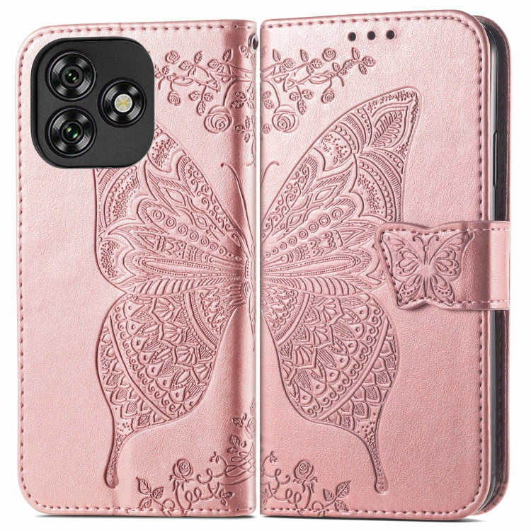Funda de Cuero con Relieve Mariposa y Flor para Teléfono Oukitel C53 (Oro Rosa)