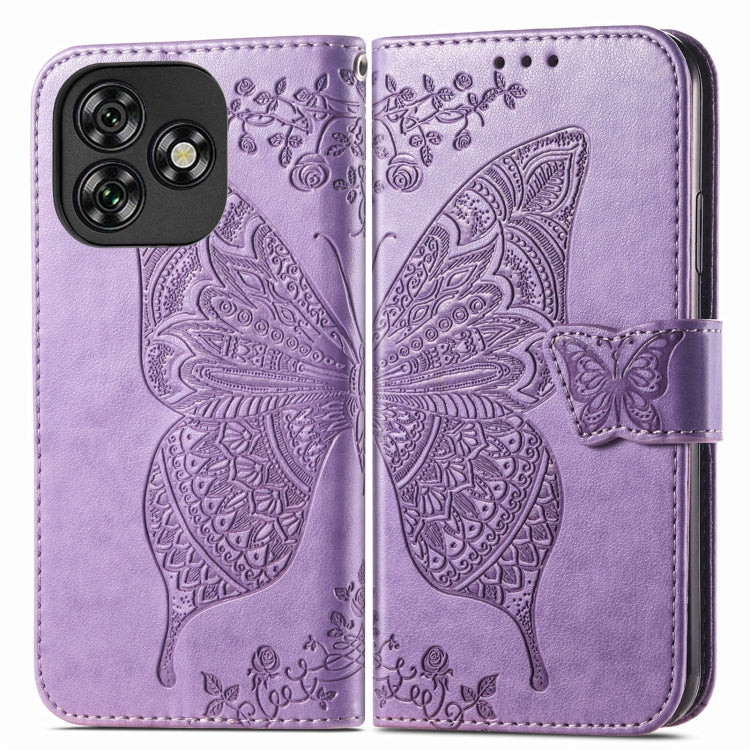 Funda de Cuero con Relieve Mariposa y Flor para Teléfono Oukitel C53 (Lavanda)