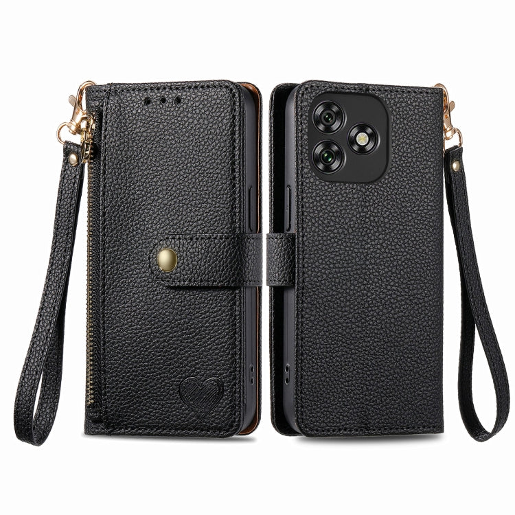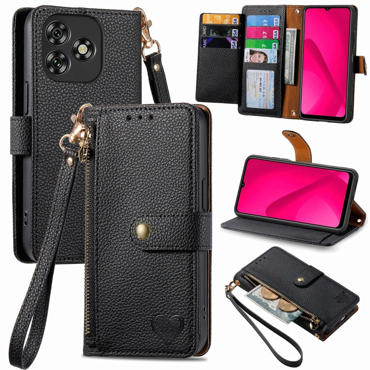 Funda de Cuero con Cordón y Cremallera Love para Oukitel C53 (Negra)