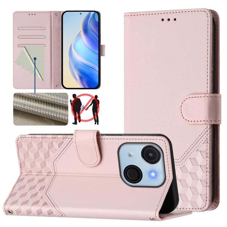 Funda de Cuero Rfid con Relieve en Panal para Teléfono Itel A50C (Rosa)
