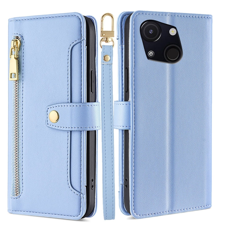 Funda de Cuero para Teléfono Itel P65 con Cremallera y Textura de Oveja (Azul)