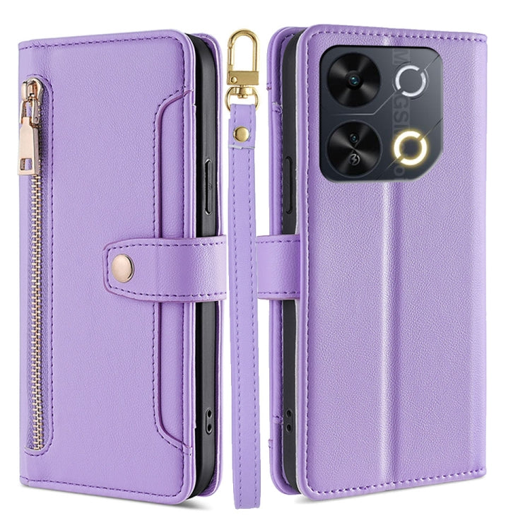 Funda de Cuero Tipo Billetera con Cremallera y Textura de Oveja para Itel A50C 4G (Morado)