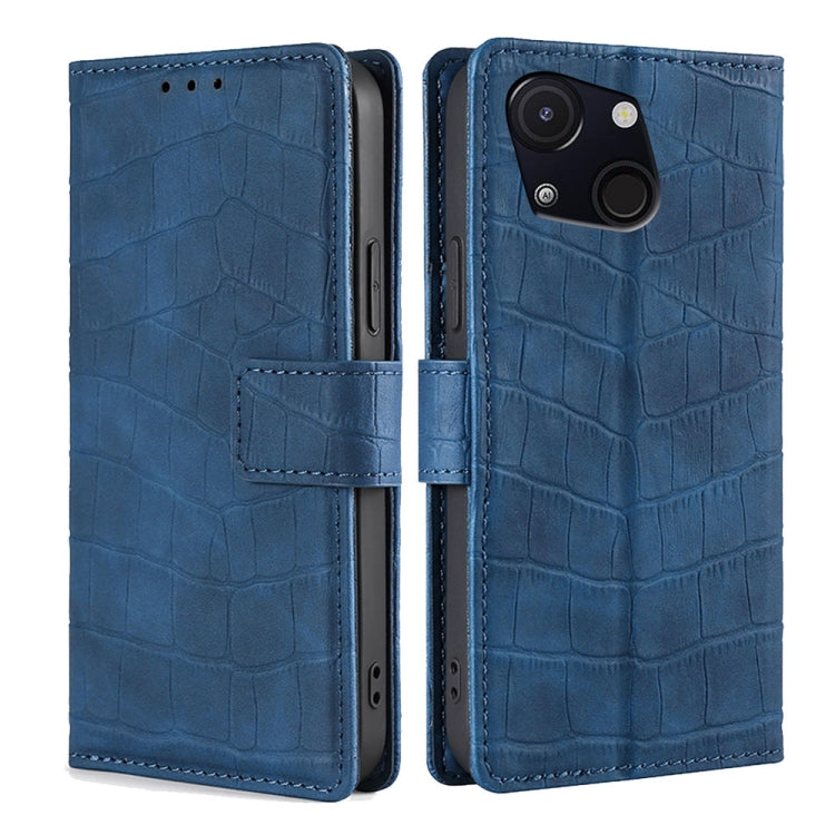 Funda de Piel con Cierre Magnético para Teléfono Itel P65 (Azul) Tacto Cocodrilo