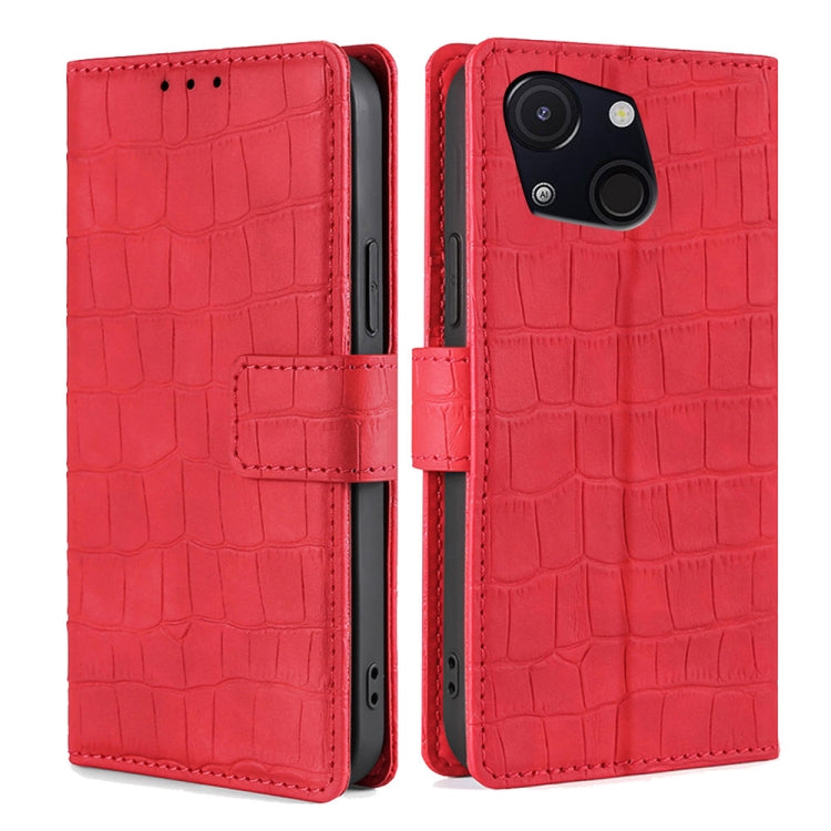 Funda de Piel con Cierre Magnético para Teléfono Itel P65 (Rojo) con Tacto de Piel de Cocodrilo