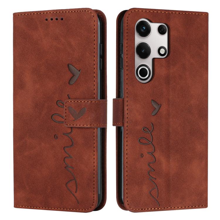 Funda de Piel con Relieve de Corazón y Cordón Largo para Teléfono Itel S25 Ultra (Marrón)